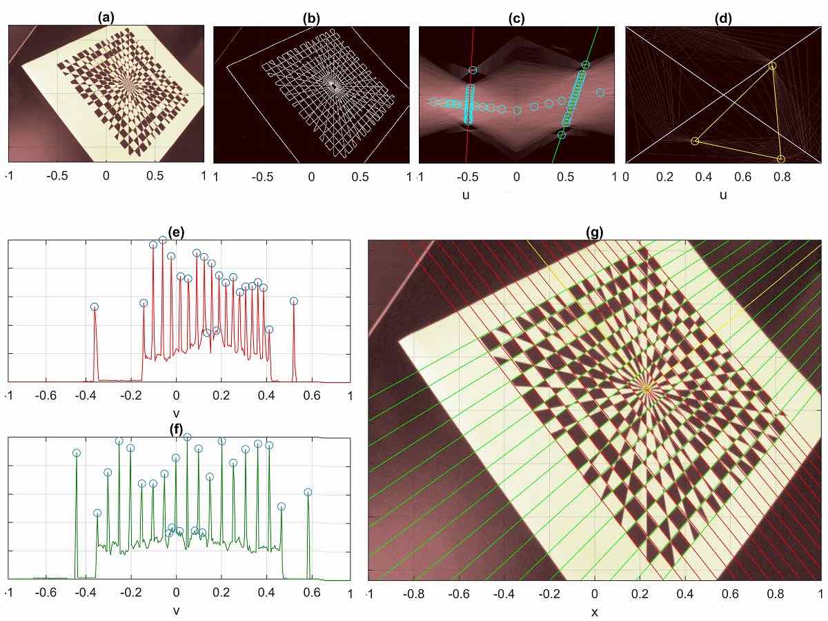 Homographies are important matrices useful for camera calibration and other applications. This paper shows that a homography can be obtained using only three particular points of the reference plane. We devised a new square-radial checkerboard pattern to detect the required points. The image processing algorithm is based on the Hough transform using parallel coordinates.