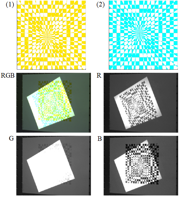 Calibración flexible cámara-proyector usando tablero de ajedrez de color superpuestos