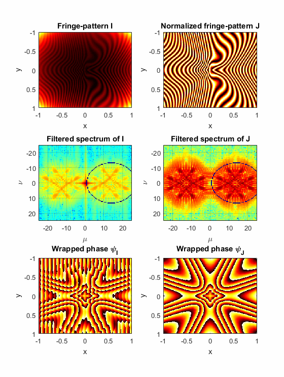 The zero-order spectrum can represent a serious source of error. Moreover, the resolution could be significantly reduced. We found that the zero-order spectrum is suppressed efficiently when the fringe patterns are normalized. Thus, the filtering procedure is simplified, and the spatial resolution is increased.