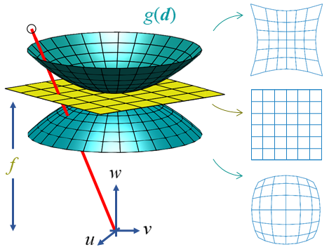El procedimiento de calibración de cámara varía de acuerdo con el modelo. También, el procesamiento de datos para cálculos métrico-dimensionales depende del modelo de la cámara. El enfoque propuesto unifica diferentes modelos en un marco matemático común. Esta característica permite diseñar algoritmos de procesamiento de datos generalizados y su implementación versátil en sistemas ópticos.