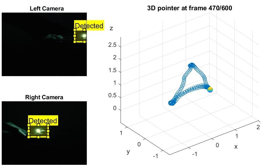 Las crecientes tecnologías de interacción con el espacio tridimensional físico nos llevan al desarrollo de métodos para la interacción con escenas virtuales. El objetivo de este trabajo es implementar un indicador XYZ para la interacción humana con espacios virtuales 3D empleando visión estéreo. La implementación computacional algoritmos se realiza usando el software Matlab. El desarrollo experimental se realiza usando dos cámaras web del mismo modelo (C922 PRO HD STREAM WEBCAM) para la obtención de imágenes estéreo. Las imágenes capturadas se procesan para aprovechar sus características tales como el color para hacer detección y seguimiento de un objeto que nos servirá como indicador. De esta forma, de las imágenes se extrae información de las características del objeto, que en este caso será el color característico de este, este indicador se usara para la interacción de humano-computadora, la cual nos permitirá obtener información de la posición tridimensional del objeto observado.
