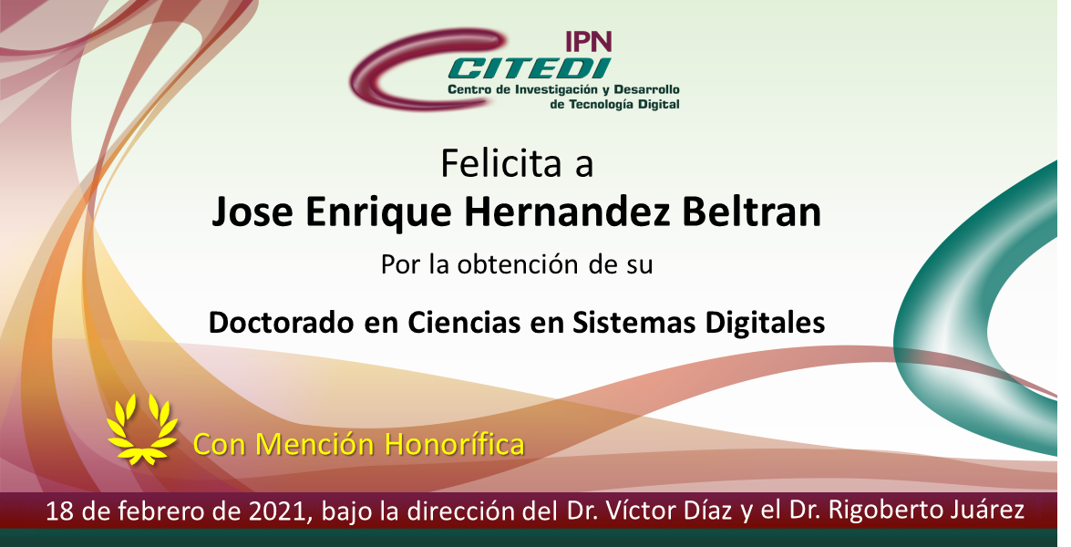 | Jose Enrique Hernandez Beltran, Doctorado en Ciencias en Sistemas Digitales, Instituto Politécnico Nacional. |