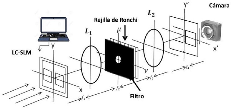 Palabras Clave: Procesador óptico de Fourier, modulador espacial de luz de cristal líquido, corrimiento de fase, rejilla de Ronchi, patrones moiré, derivada espacial de amplitud, derivada espacial de fase.