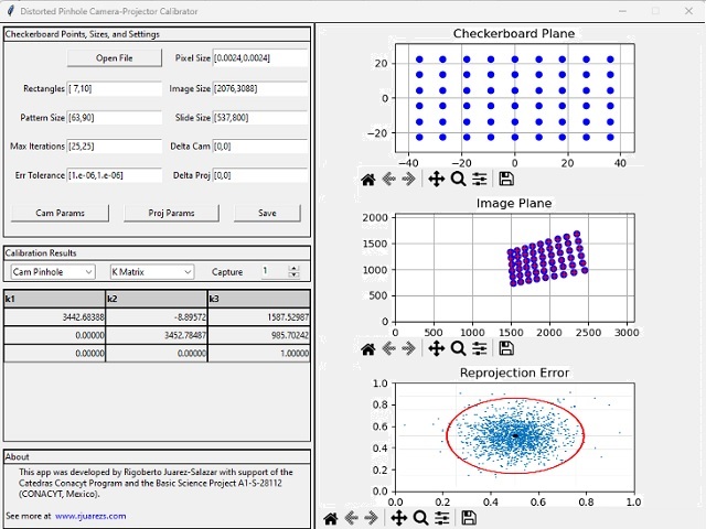 Angel Rodriguez, Construcción de aplicación Python con interfaz gráfica para calibración cámara-proyector, ESCOM, Instituto Politécnico Nacional, Dec 2023 - June 2024.