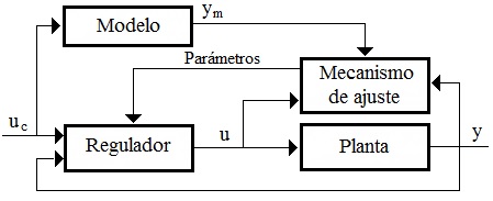 This thesis presents an adaptive controller by reference model for a laboratory twin rotor helicopter. First, the dynamic is studied employing the Newton laws obtaining a nonlinear ordinary differential equation system. Next, the recursive least squares method with exponential forgotten factor for real-times parameter estimation is studied. Finally, four adaptive controllers by reference model are analyzed and compared with a classical state feedback controller. The computer simulations and experimental tests are performed using Matlab-Simulink with communication interface to a laboratory twin rotor helicopter.